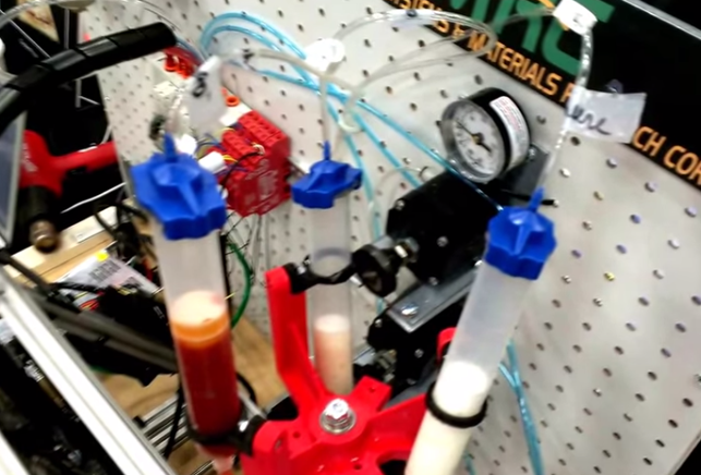 Systems and Materials Research Corporation (SMRC) is using powders to produce a edible slurry for 3D printing of food on a contract from NASA. Their pizza printer can “print” dough, sauce and cheese onto a platform with a heating element underneath.