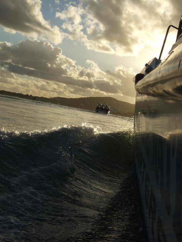 - lining up the shot on Michael’s boat